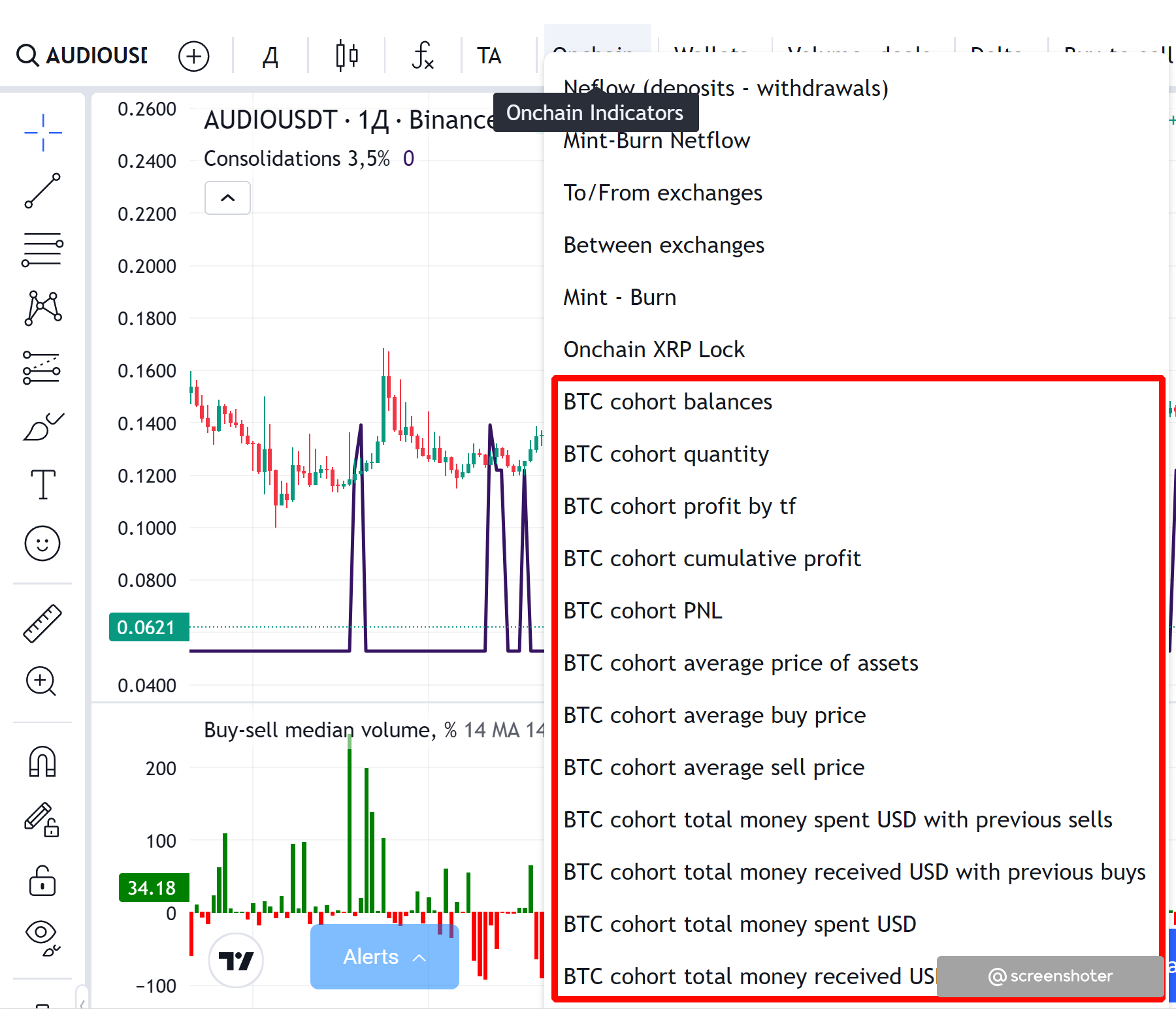 Отдельно стоит указать индикаторы когортного анализа, которые доступны в разделе Onchain индикаторов на графике