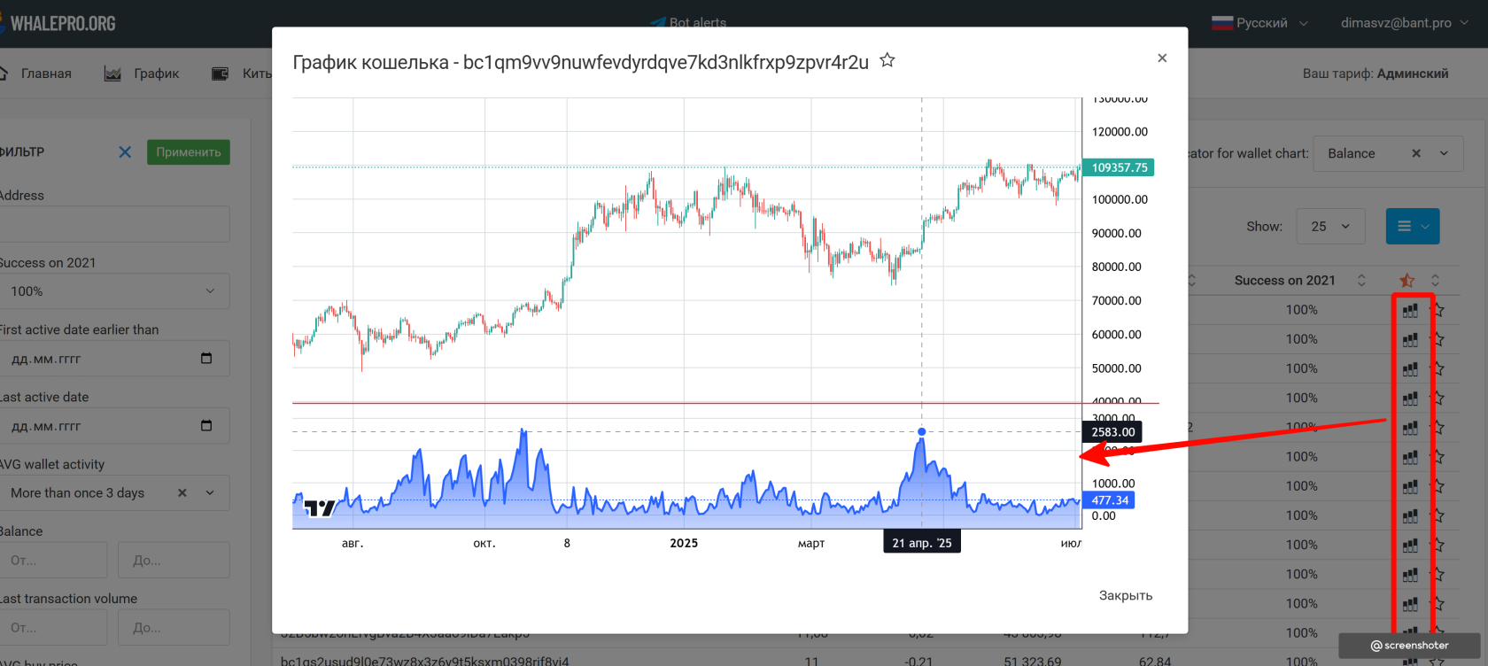 Также в 2025 году добавили возможность быстрого предварительного просмотра того, как вёл себя кошелёк за последний год на 1d таймфрейме.