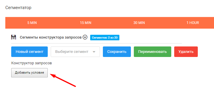 Для добавления нескольких условий можно нажать на кнопку Добавить условие в конструкторе запросов. При этом все условия объединяются логическим И, то есть в результирующем сегменте будут только те монеты, которые удовлетворяют всем условиям одновременно.